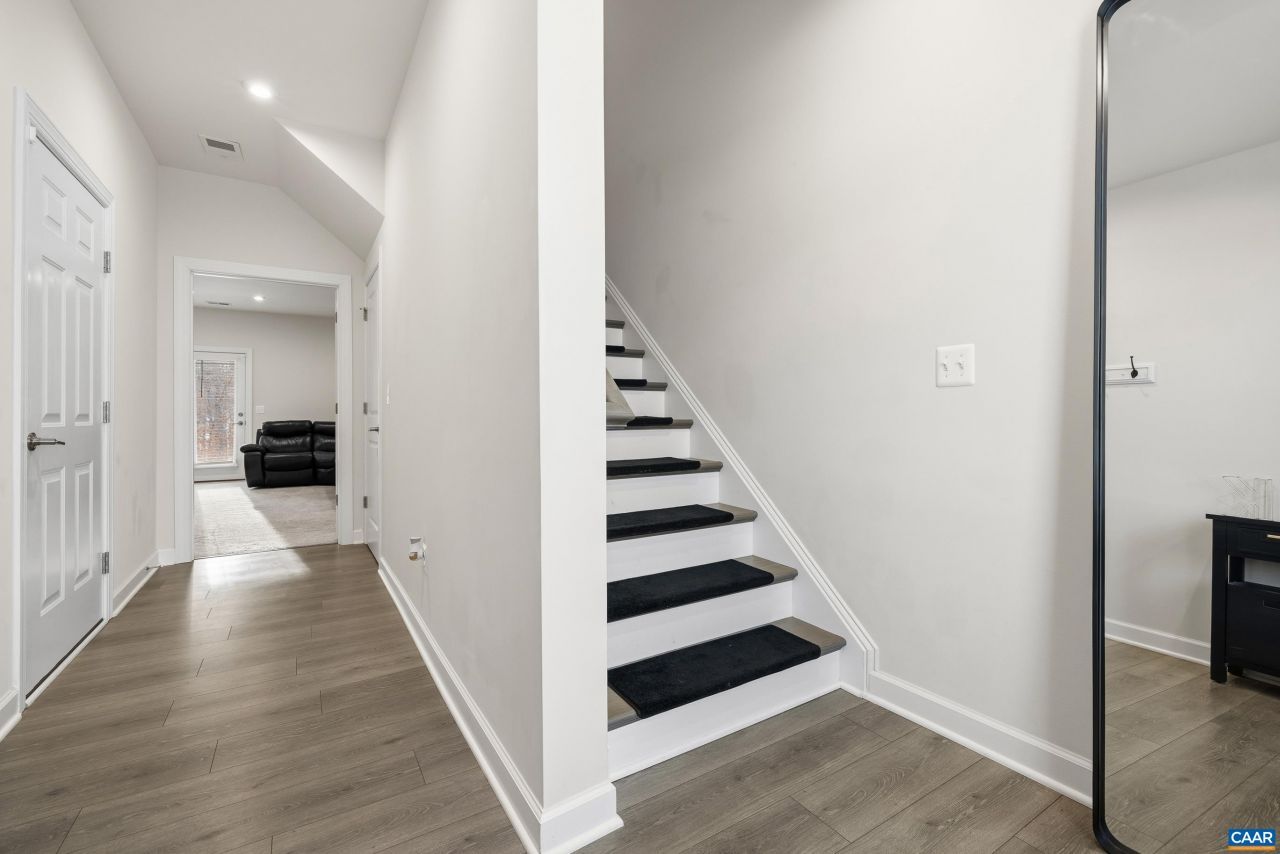 Like-new Southern Development Bainbridge Townhouse in popular Belvedere neighborhood. Discover a gorgeous gourmet kitchen filled with plenty of light, gas stove, granite countertops, a large center island, and a spacious eat-in dining area,. The living room is truly the heart of the home, highlighted by an electric fireplace and built-in bookshelves. Downstairs, a spacious recreation room with a full bath offers incredible flexibility?ideal for a home theater, game room, office, or hobby space/gym. The home also includes a one-car garage, perfect for storage, parking, or a workshop. Upstairs, the owners suite provides a retreat with an en suite bathroom complete with a dual vanity and frameless glass shower door. The laundry includes a gas dryer! Outdoor living shines with a composite deck overlooking the wooded backdrop, perfect for enjoying nature or grilling on a nice evening. Exceptional amenities include sidewalks, walking trails, playgrounds, and green spaces throughout the neighborhood. The HOA fee includes Ting gig-speed internet, yard maintenance, and trash/recycling service, making this truly low-maintenance living. All of this - just minutes from Rio Road, Route 29, and downtown Charlottesville. Dont miss it!