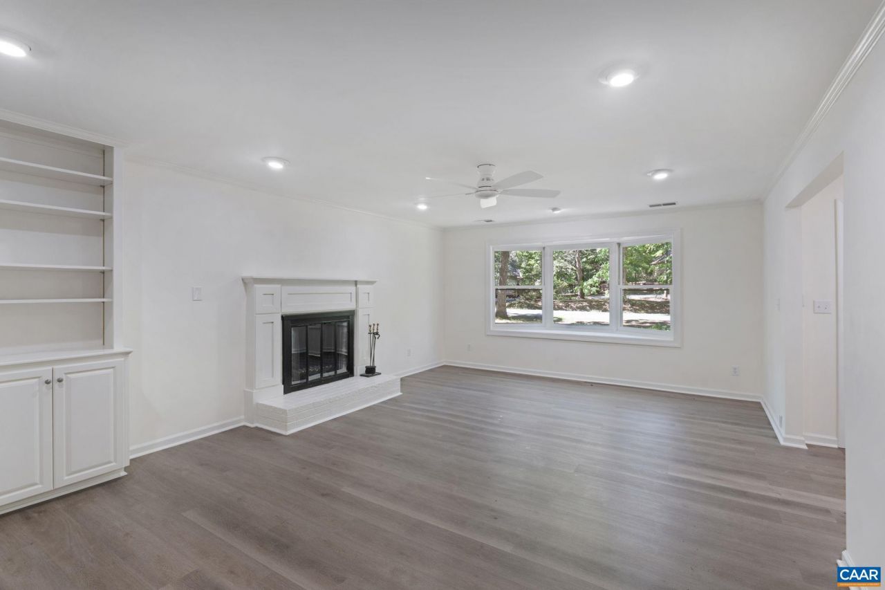 Come see this beautifully renovated home at Lake Monticello. This home features three bedrooms and two full baths. Upon entering, you will love the foyer that leads to a large living room complete with built-in cabinets, bay window and a wood-burning fireplace. Off the living room is the dining room and kitchen featuring white painted cabinets, new stainless steel appliances, and Corian countertops. The dining room also includes a new sliding glass door that opens onto a new deck. The layout includes two bedrooms and one full bath on one side of the home, with the bathroom offering an oversized double vanity and a linen closet. The master suite features a new sliding glass door leading to the deck and a beautiful bathroom with a tile shower with a rain feature, glass door, a new vanity, and a linen closet. The interior and exterior were freshly painted last year, and several updates were completed in 2025, including new heat pump, luxury vinyl plank flooring, light fixtures, vanities, and tile shower. New roof installed 2026. This home sits on one of the most level lots at Lake Monticello with a fenced in backyard and circular driveway. One car garage is perfect for storage. Owner is a licensed real estate agent in Virginia.