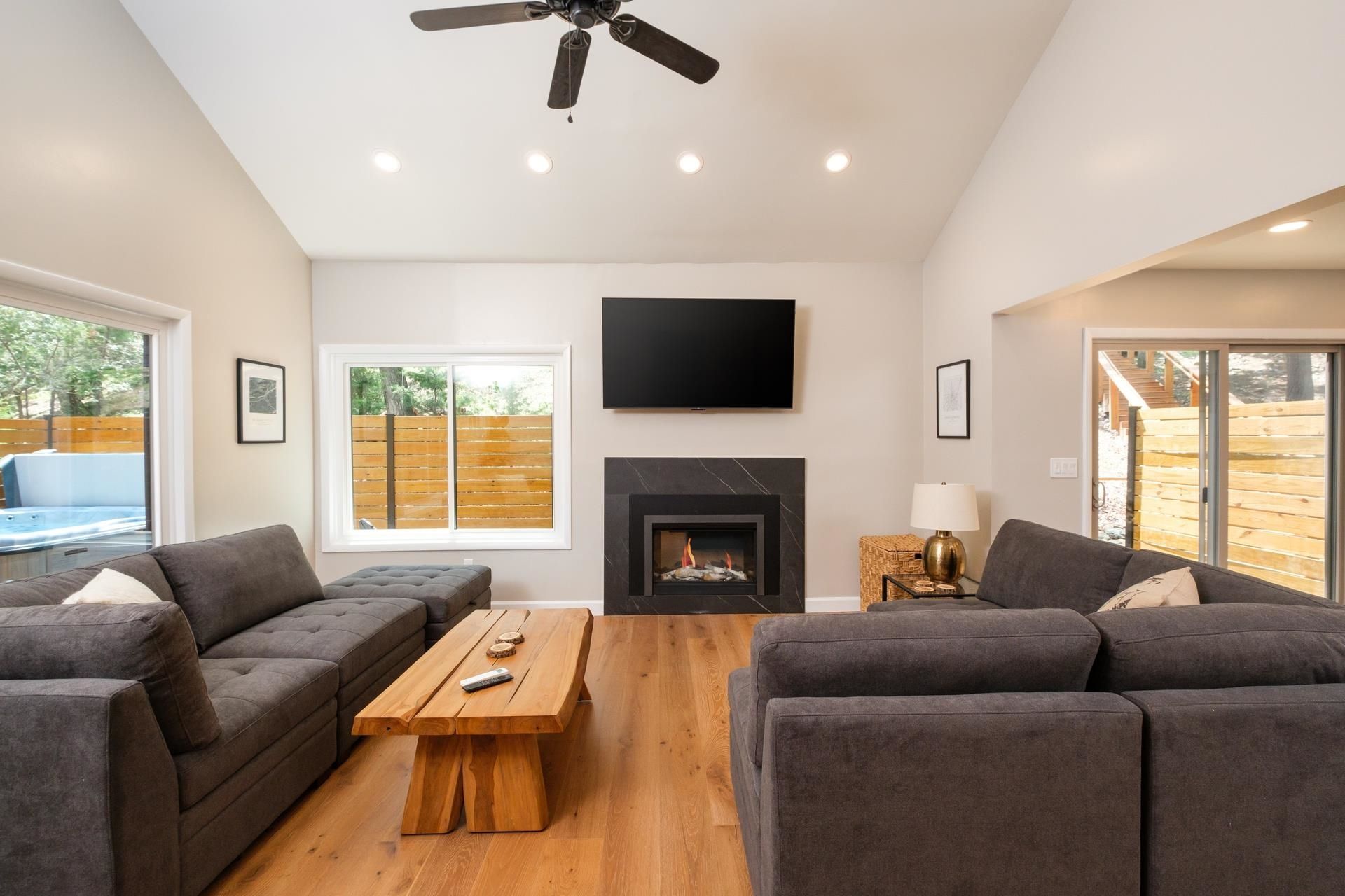 Located in Massanutten Resort (Skiing, Golfing, Waterpark) - just minutes from the Slopes---Fully Renovated Property with a 2 Story Living Room and Electric Valor Fireplace - New Kitchen features Stainless Appliances, Diamond Jamestown Colt wood cabinets, Leathered Black Pearl Granite Counters, and Kraus Stainless Steel Sink and Faucet - Brle White Oak Wire Brushed Engineered Hardwood on Main & Upper Levels - White Oak Solid Hardwood Stairs to Upper Level - Two New Bathrooms with Ceramic Tile to the Ceiling in the Shower with Seamless Glass - Three Bedrooms - New Trex Deck - New Hot Tub & Firepit - Bunk Beds included - New Roof, Vinyl Siding, Trim & Gutters - Windows Replaced in 2021 - Massanutten Owners enjoy use of the MPOA Pool from Memorial Day until Labor Day and Tennis Courts Year Round in addition to discounts on Mini Golf, Bumper Cars, and Go Karts at the Family Entertainment Center- Additional Features of the Massanutten Resort are Skiing, Golf Driving Range, Waterpark, Dining and Shopping(not included in the POA)--25 Minutes to Harrisonburg & JMU -- Surrounded by Hiking, Wineries, Dining and Scenic Drives -- 20 Minutes to Shenandoah National Park
